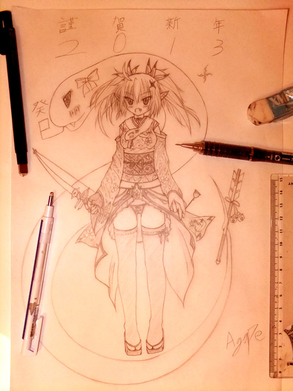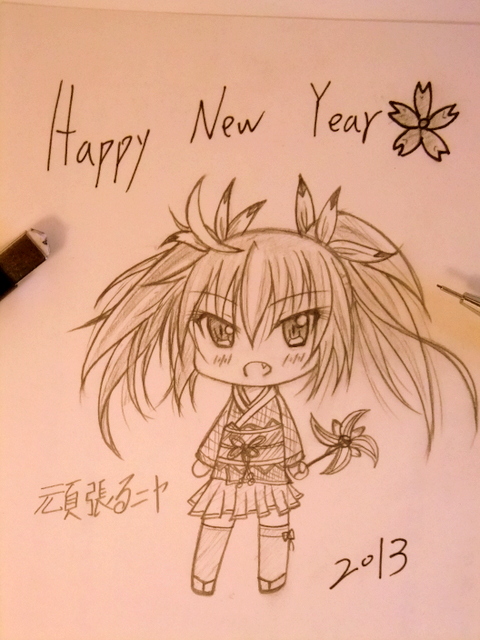 一応正月絵、干支は巳(蛇)なので4年後、ハイパーミラクルパワアップしてみせます